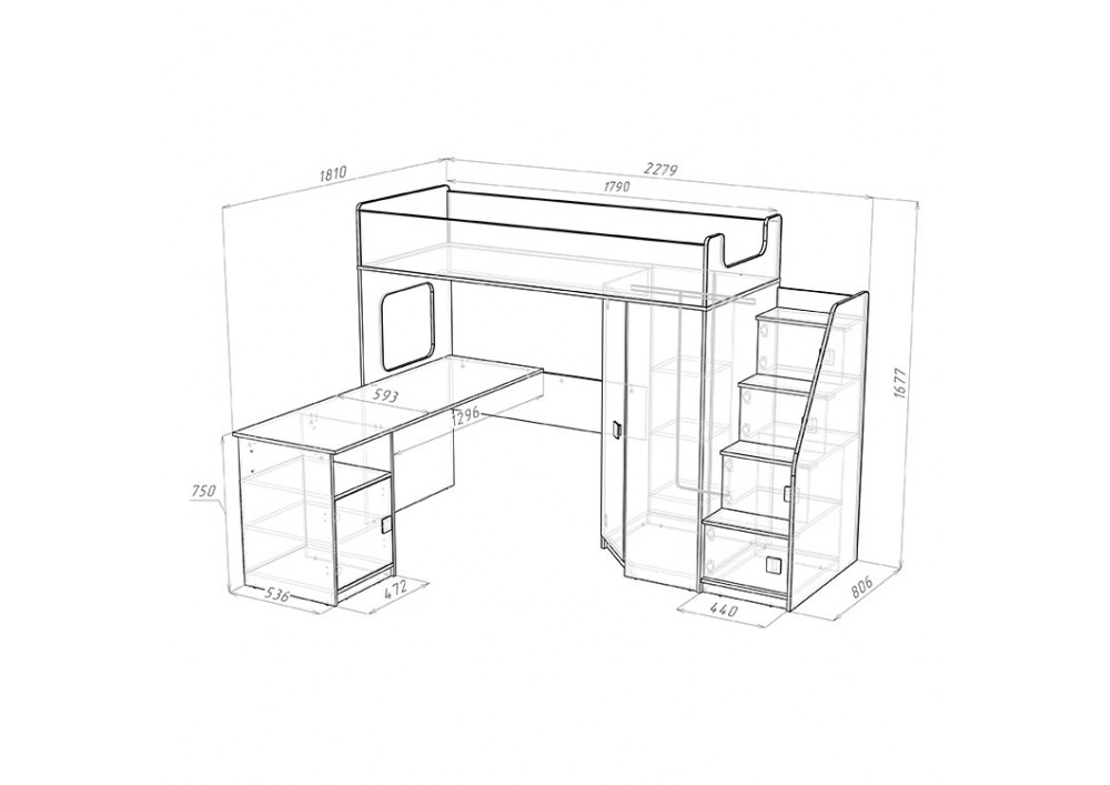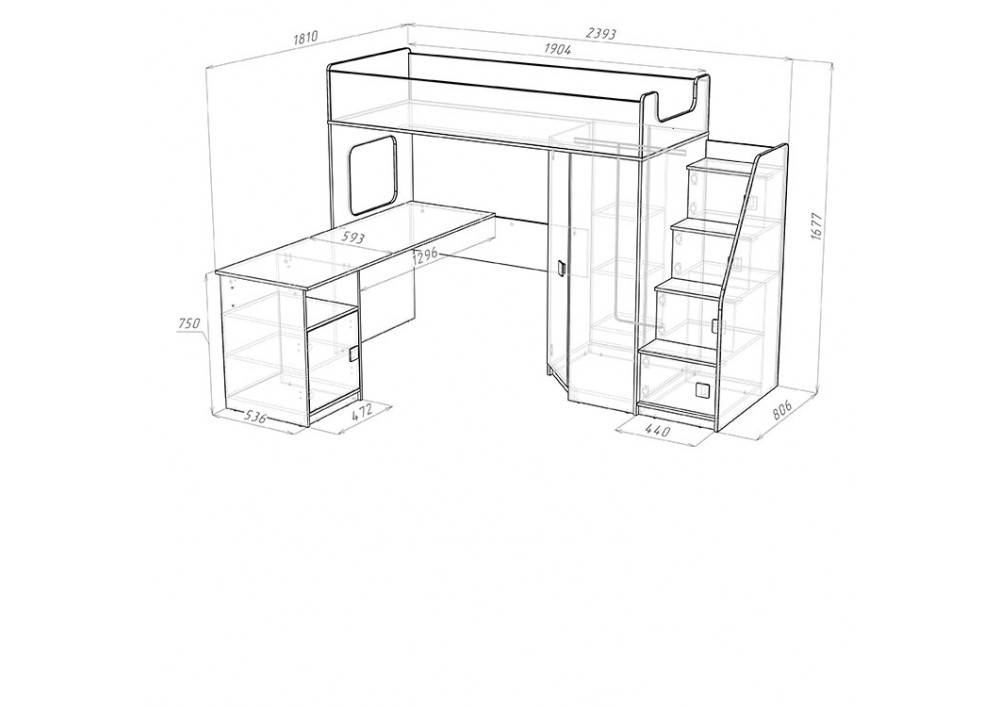 Учебная зона со столом под спальным местом открывает возможности для письменных работ, а также здесь удобно расположить ноутбук.