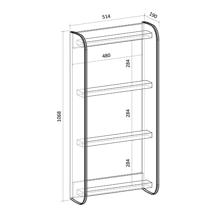 Длина/Ширина/Высота (мм) 514 × 190 × 1068