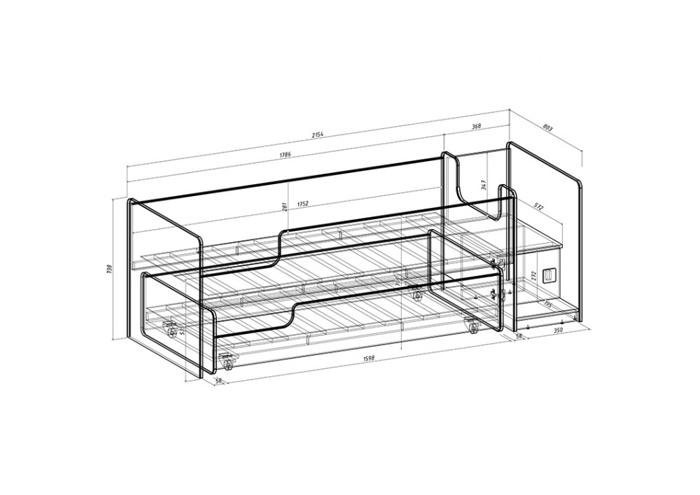 Отличная функциональная кровать Легенда К101  со спальным местом 1600х750. Кровать легко выдвигается и задвигается с помощью роликовых колёс с фиксацией.